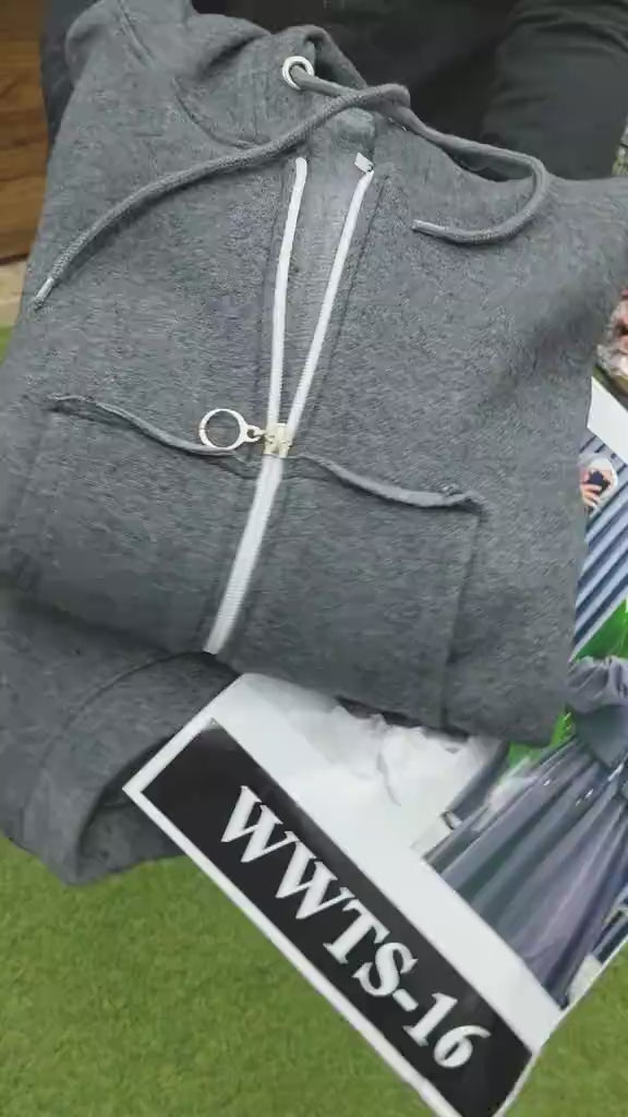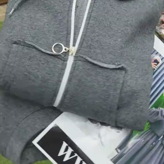 Iss stylish two-piece set mein style aur comfort dono paayein. Yeh grey co-ord set ek trendy cropped zip-up hoodie aur matching high-waist long skirt ke saath aata hai. Iska fabric bohat soft aur araam-deh hai, jo daily wear ya casual outings ke liye perfect hai. Modern aur modest look ke liye yeh ek behtareen choice hai.