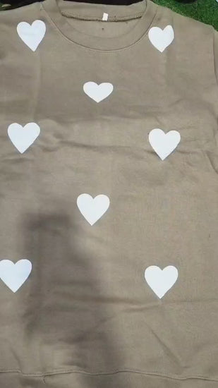 Yeh pyara aur aaramdeh hearts sweater set aapke casual collection ke liye ek behtareen izaafa hai. Iske oversized sweater par banay chotay-chotay dil isay ek cute look dete hain. Yeh set rozana pehennay ke liye bahut aaramdeh aur stylish hai. Iska soft fabric aapko behad pasand aayega.