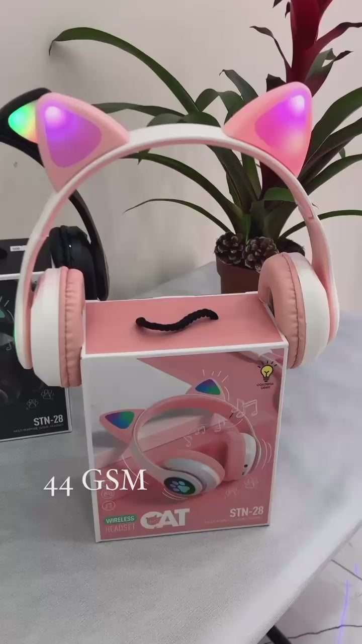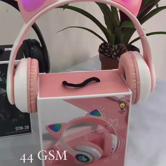 A playful and comfortable over-ear headset featuring a popular cat ear design. These wireless headphones are perfect for music, gaming, or online classes. They offer a fun listening experience with built-in outdoor headset features. Available in attractive pastel color options.